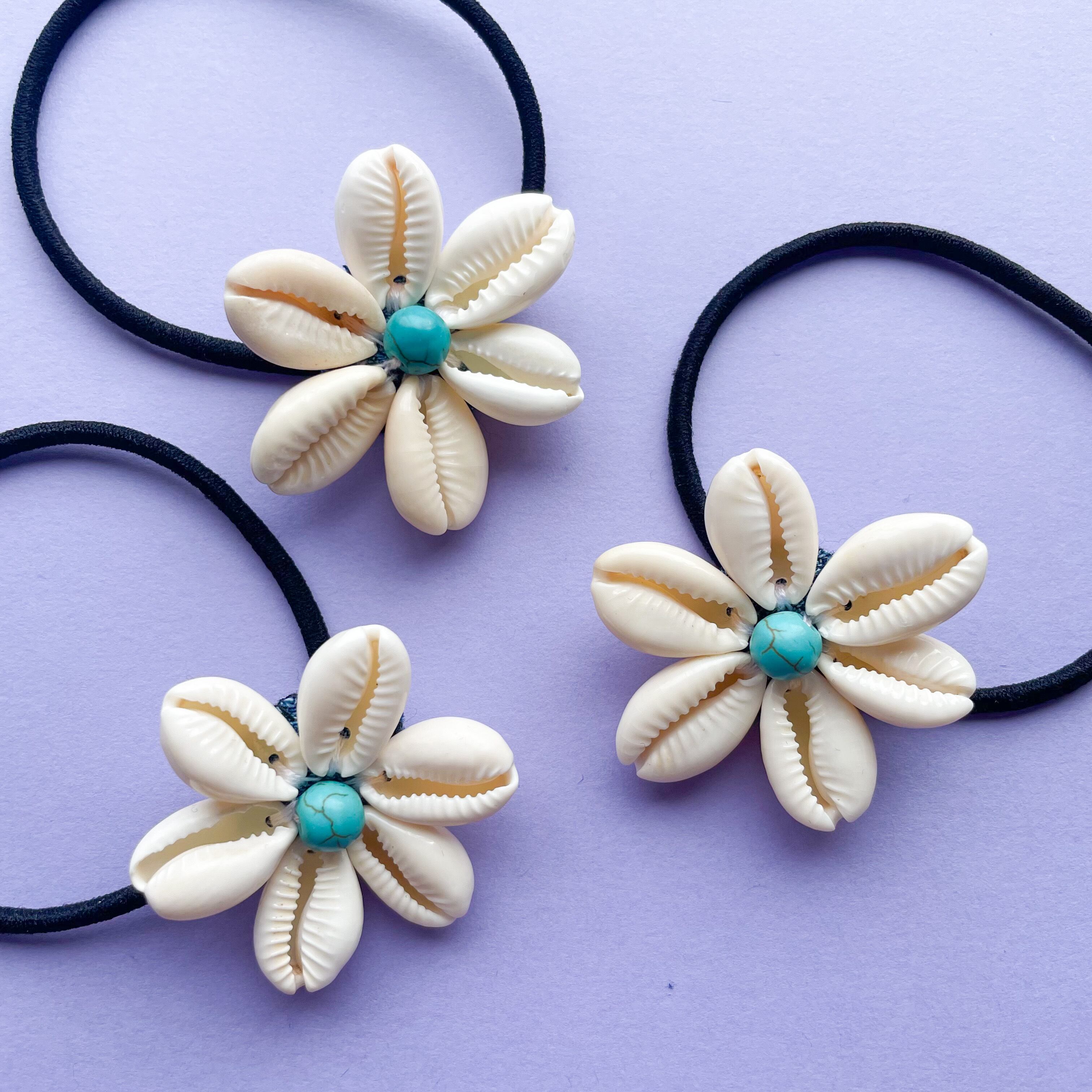 直径4.5cm〜5cm前後の シェルのヘアゴム ·͜· ♡ 天然のシェルを縫い付けて お花にしています♡ ̖́-